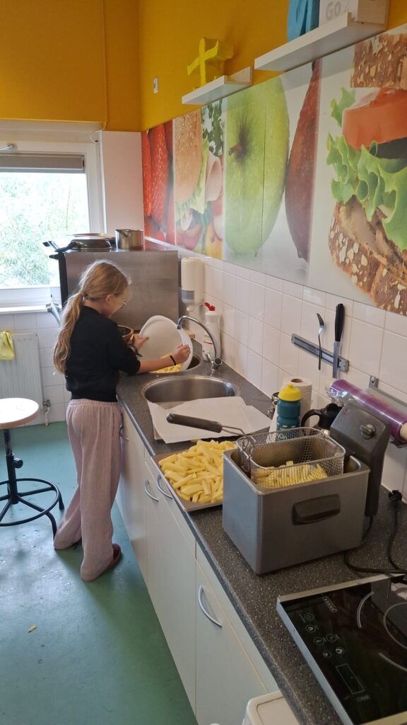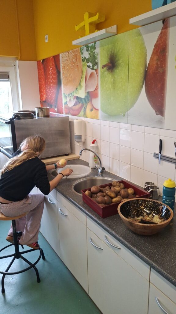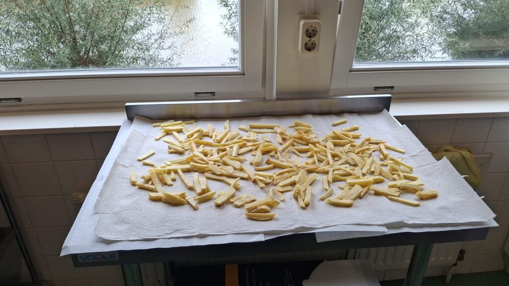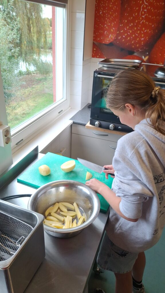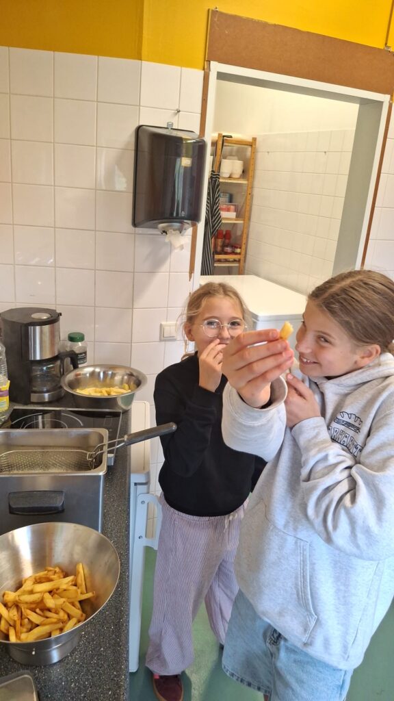 Deze week hebben Lola en Isabel friet gebakken van aardappels uit onze eigen moestuin.